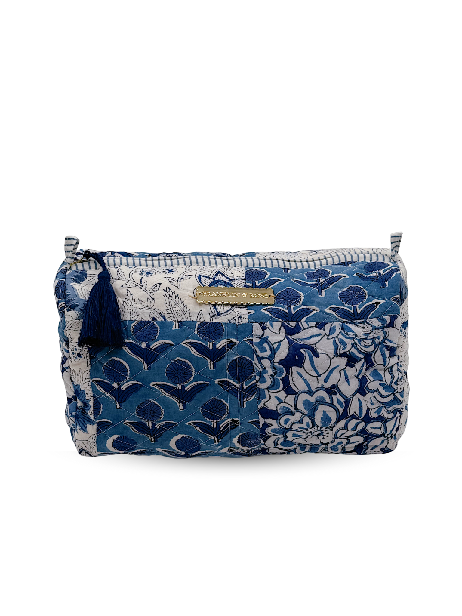 - Made from soft, Indian hand-block printed 100% cotton in a mix of calming florals each bag is uniquely quilted and finished with a playful tassel zipper pull